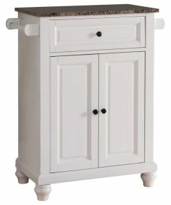 Pilaster Designs Ian Kitchen Island Storage Cabinet, White & Marble Wood, Adjustable Shelf