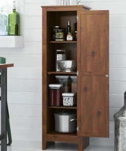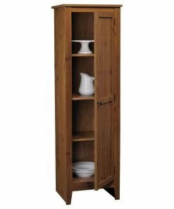 Ameriwood – Pantry – 7303028 – Gain extra storage in the kitchen dining room or other spaces with this beautiful storage pantry from Ameriwood. The Ameriwood Single Door Storage Pantry Cabinet is just 18 inches wide making it a great fit in smaller rooms or in any home that needs some extra space for kitchen essentials. Inside the cabinet four shelves offer room for all your pantry items cereals canned goods and snacks. You can also use the storage pantry to hold dinnerware mugs glasses and other serveware. Three of the shelves are adjustable allowing you to configure the cabinet to fit the size of your items. The Single Door Pantry is finished in Ameriwood’s Old Fashioned Pine finish giving it a warm rustic look that goes great in any decor. A decorative pewter knob on the cabinet door adds to the antique styling. Easy to assemble with household tools. Made in USA.