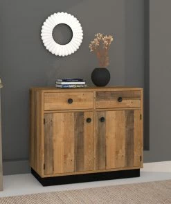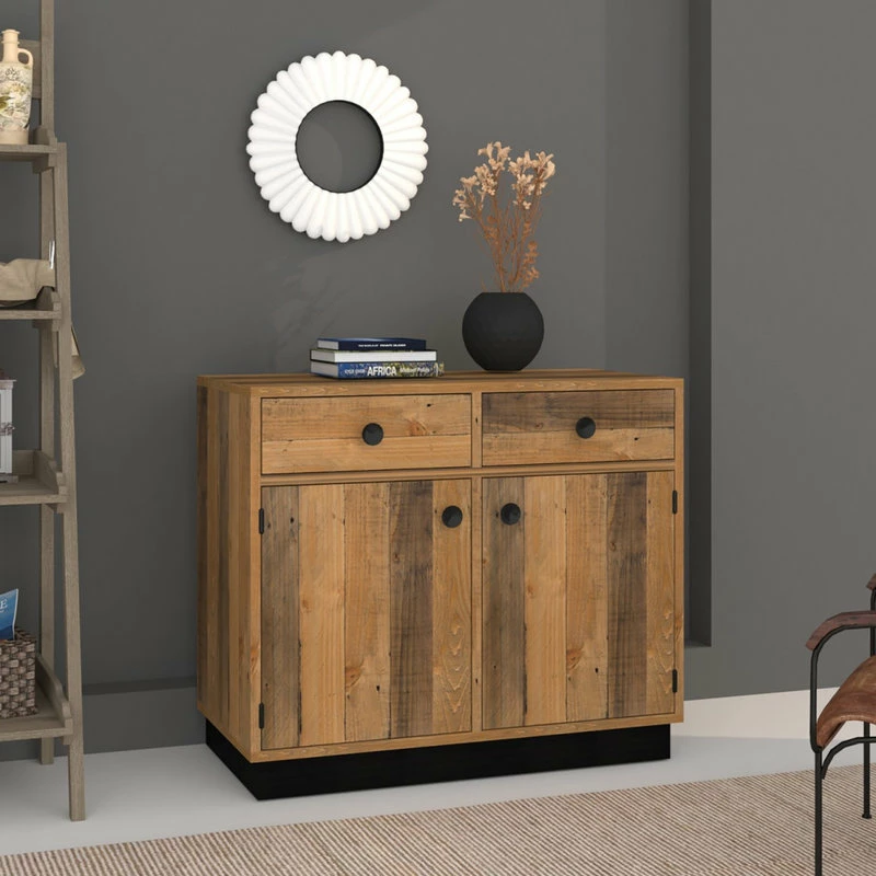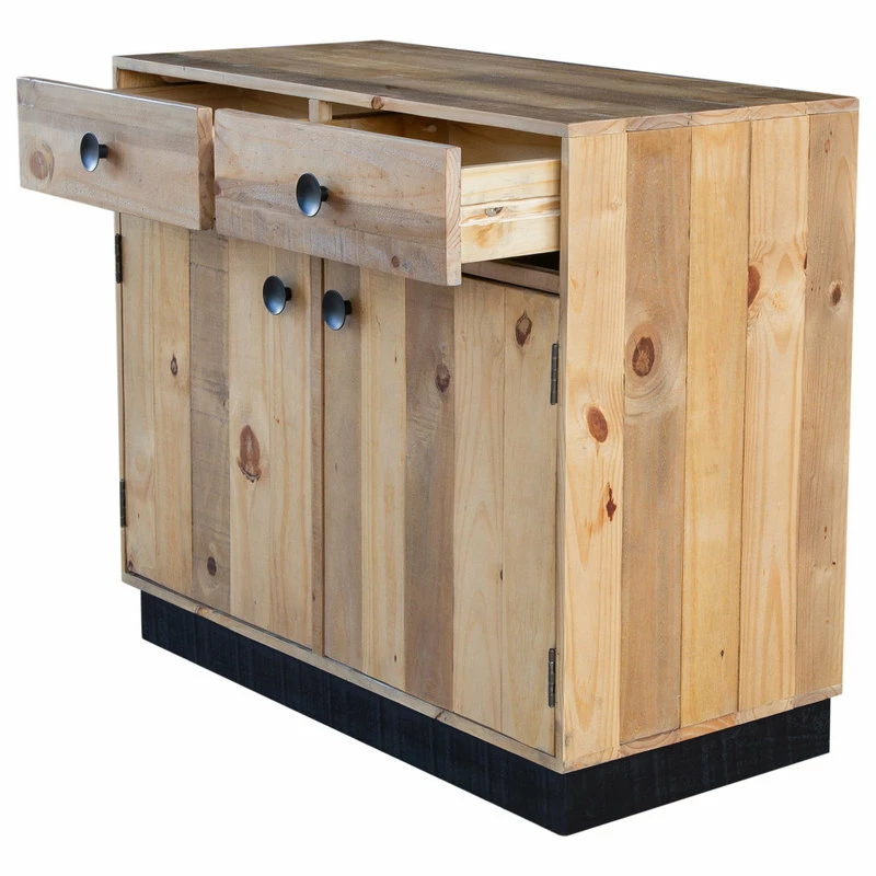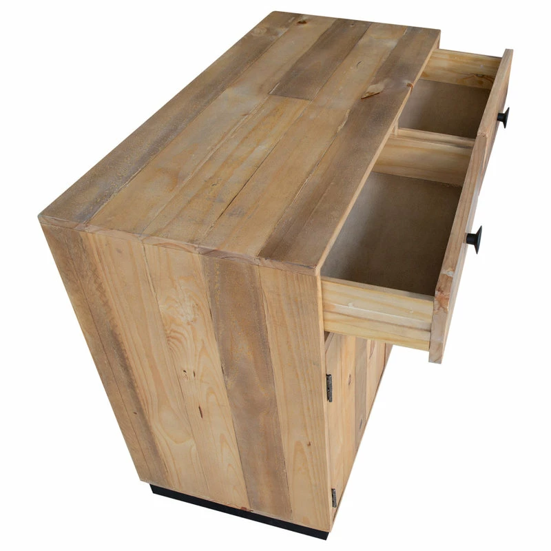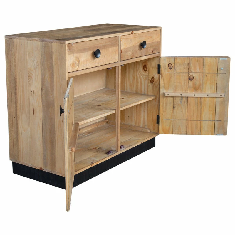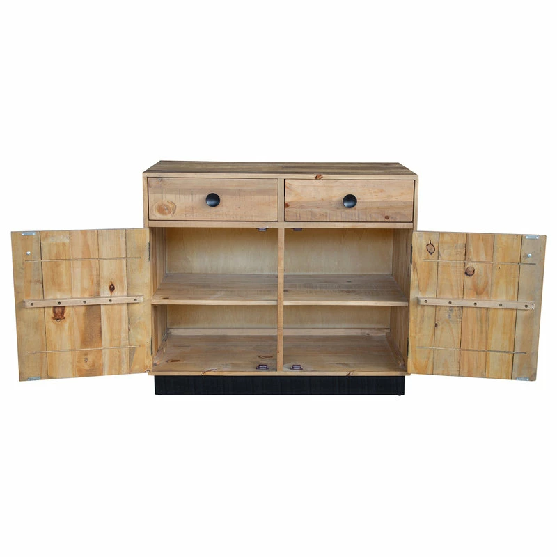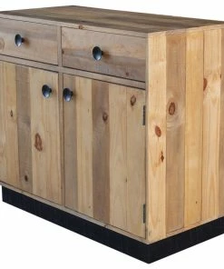 This 2 drawer 2 door sideboard will impress your guests. Perfect in the dining room, eat in kitchen, or even a nice piece in the hallway. Great for storing all your napkins, tablecloths, cutlery and plates. It is made in an FSC certified facility, strongly believing in caring for the environment. This solid top sideboard is sturdy and comes with wooden runners for the drawers. The shelf inside allows for even more storage. This table is manufactured to meet the demands of commercial use in addition to residential.