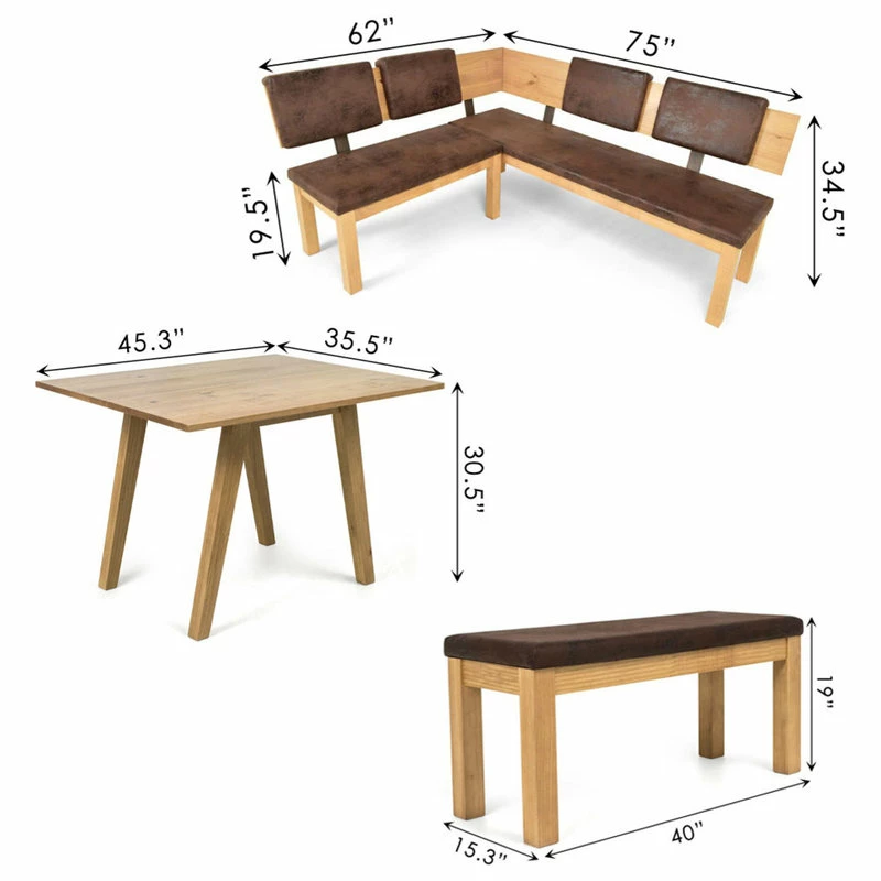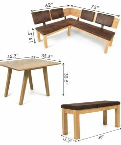 - Corner Bench: 75″ L x 62.” D x 34.5″ H