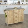 The contemporary home cook can’t go without two things in the framework of her kitchen: plentiful storage and appropriate appliances. Our Denver Kitchen Island covers your need for storage and then some! This multifunctional kitchen cabinet is a freestanding island that features four wheels for legs, each with a locking feature so it doesn’t slip away while you are chopping fresh herbs and veggies. A towel bar, cabinet with concealed shelf, wine rack shelf, and two open shelves provide plentiful space for cookware, non-perishables, and sundries. The frame is made with a blend of engineered wood and rubber wood and is painted white at the base. Topping this is a beautiful solid wood butcher block countertop. This modern kitchen island requires assembly and is made in Malaysia. To clean, wipe with a damp cloth.