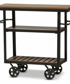Be the first to review “Baxton Studio Kennedy Rustic Antique Black Textured Metal Distressed Wood Mobile Serving Cart” Cancel reply
