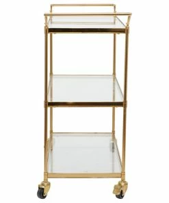 SKU: 560054 Category: Bar Carts Tags: 3 tier storage cart, Bar cart, Brass Bar Cart, Brass iron bar cart, Gold metal and glass storage cart, Iron bar cart, Metal, Rectangle bar cart, Solid bar cart, Storage cart with caster wheels, Traditional bar cart, Traditional brass iron bar cart, Traditional style storage cart
