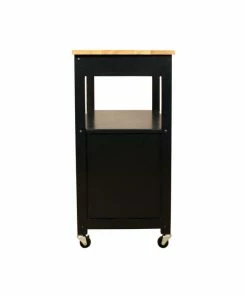 With a black base and a natural colored hardwood top, this Kitchen Trolley by Catskill Craftsmen is sure to match any decor in your home. Locking caster wheels allow it to move from room to room and become a stable workplace when the wheels are locked. Made of warp resistant materials, this trolley has plenty of storage space, with an open shelf and an enclosed drawer and cabinet.