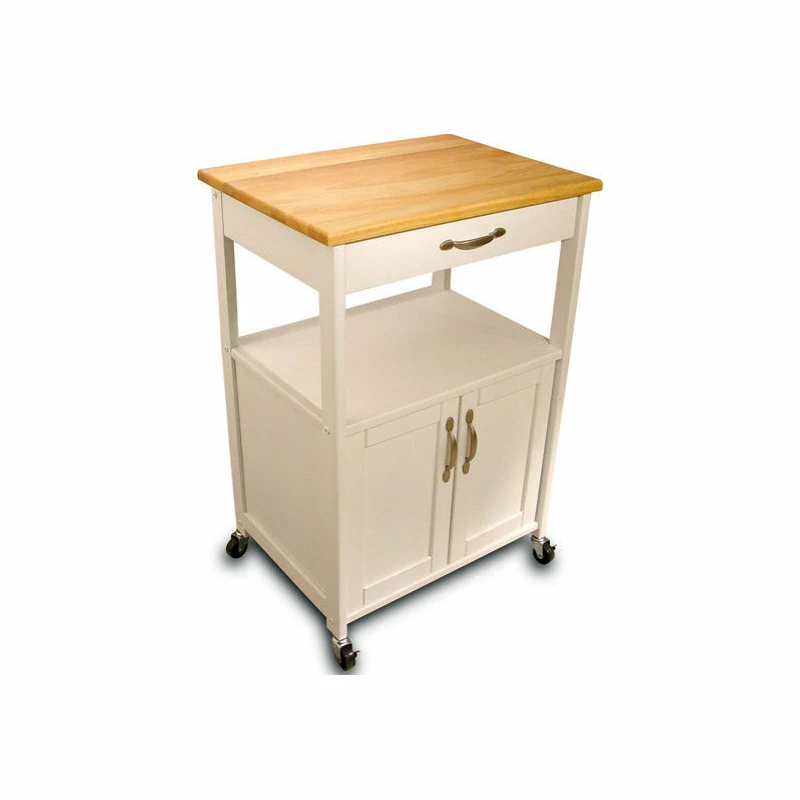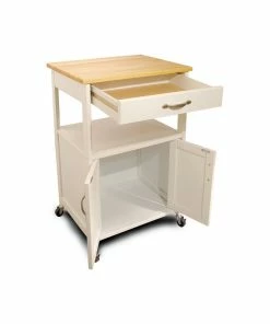 The Storage Trolley Cart by Catskill Craftsmen is a great addition to anu kitchen. This kitchen cart is made out of Rubberwood and is finished in a lacquered top. There is plenty of storage space for all of your kitchen needs and accessories with the cart’s top drawer, middle open storage area, and bottom shelves with door. In addition, you can feel confident knowing that the cart’s wheels will enable you to move your cart to any desired location, while the heavy duty locking casters will keep it safe and secure.