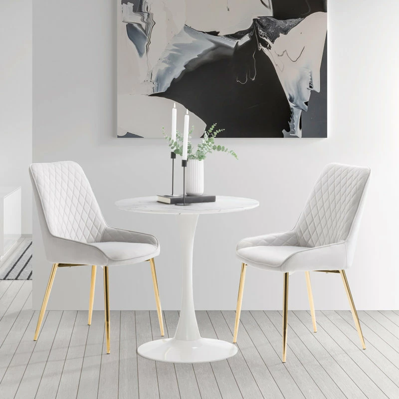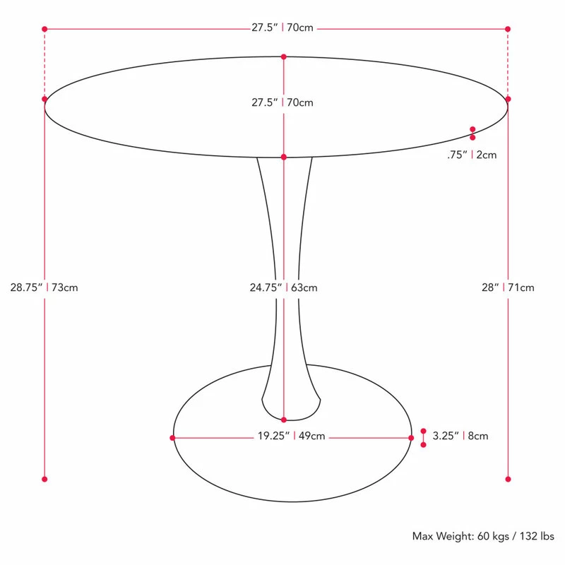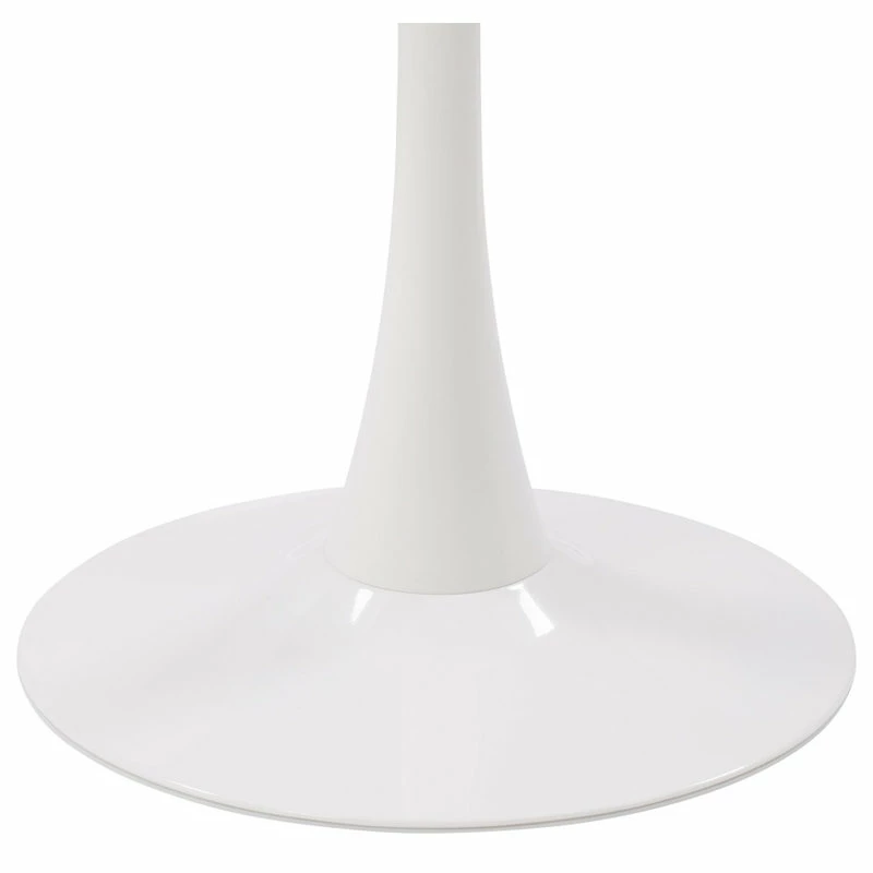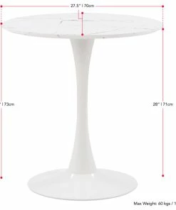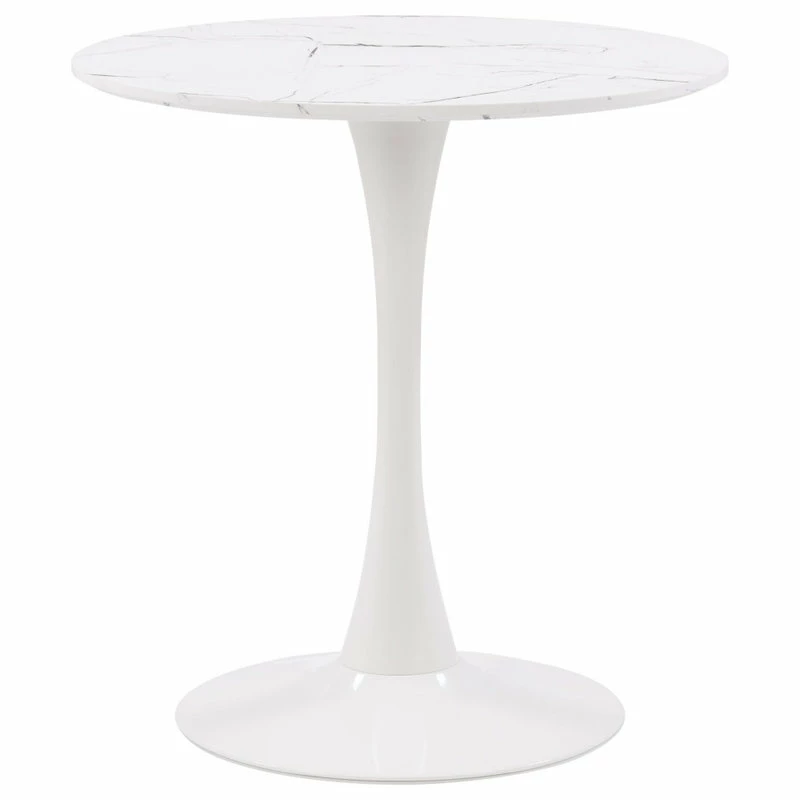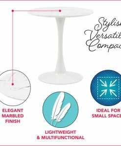 Are you ready to host everything from breakfast to dinner? This table is a stylish centerpiece for your dining room or eat-in kitchen ensemble. A sturdy white metal pedestal base with a circular marble-designed top adds style to your dining space. Its mixture of materials makes it ideal for both classic and contemporary aesthetics, while the marble top makes the perfect foundation for any table decor.