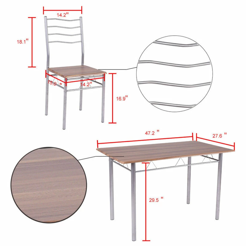 This is our modern and beautiful dining table set which is simple and elegant in appearance. Featuring durable iron construction, MDF chair seats and desktop, this dining table is sturdy and stable enough to withstand years of use. It can be widely used as a dining table to enjoy meals, or for other occasions:garden, picnic, party, play card games etc. Classical 1 table and 4 chairs in one set with large load capacity to greatly suit your needs, high quality at great price.Don’t hesitate to buy it now! It will never fail your expectation