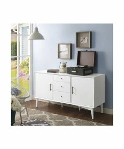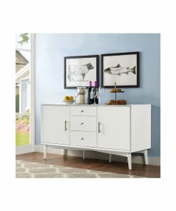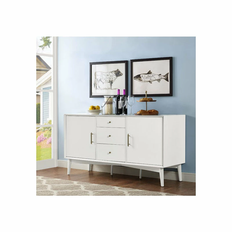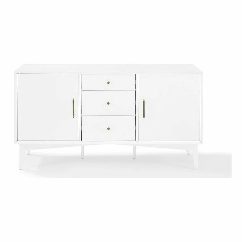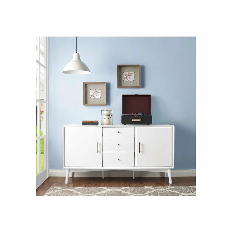 Mid-Century Modern style returns with Crosley’s Landon collection. The versatile Landon Buffet can serve as an innovative media cabinet or as a sleek side buffet. Along with the two spacious cabinets, the three center drawers roll out on full extension glides, giving easy access to every corner. The slender, round tapered legs and modern lines are echoed in the genuine metal drawer pulls and cabinet handles. With a beautiful smooth finish, the Landon collection is perfect for bringing elegant simplicity into any home.