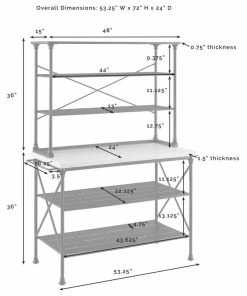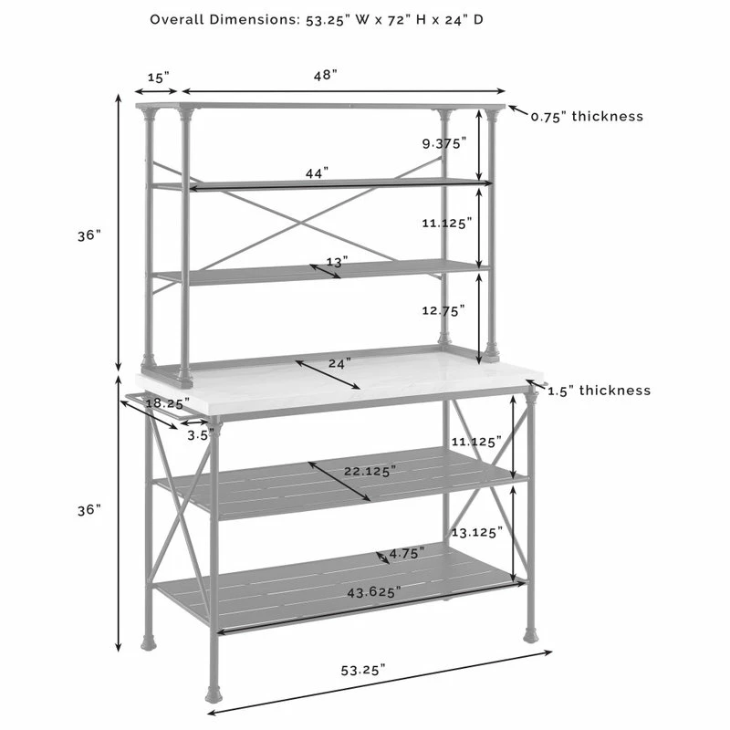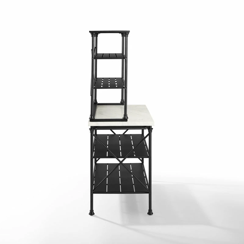 Inspired by the French industrial revival, the Madeleine Kitchen Island and Hutch brings an elegant aesthetic to the kitchen. Featuring open metal shelving and a spacious countertop, the sleek profile of this set offers functionality without overpowering your space. The hutch’s shelving is perfect for display or storage, while the lower shelves provide storage for larger kitchen or dining items. Stay organized in style with the Madeleine Kitchen Island and Hutch.