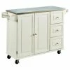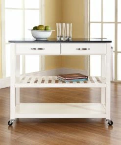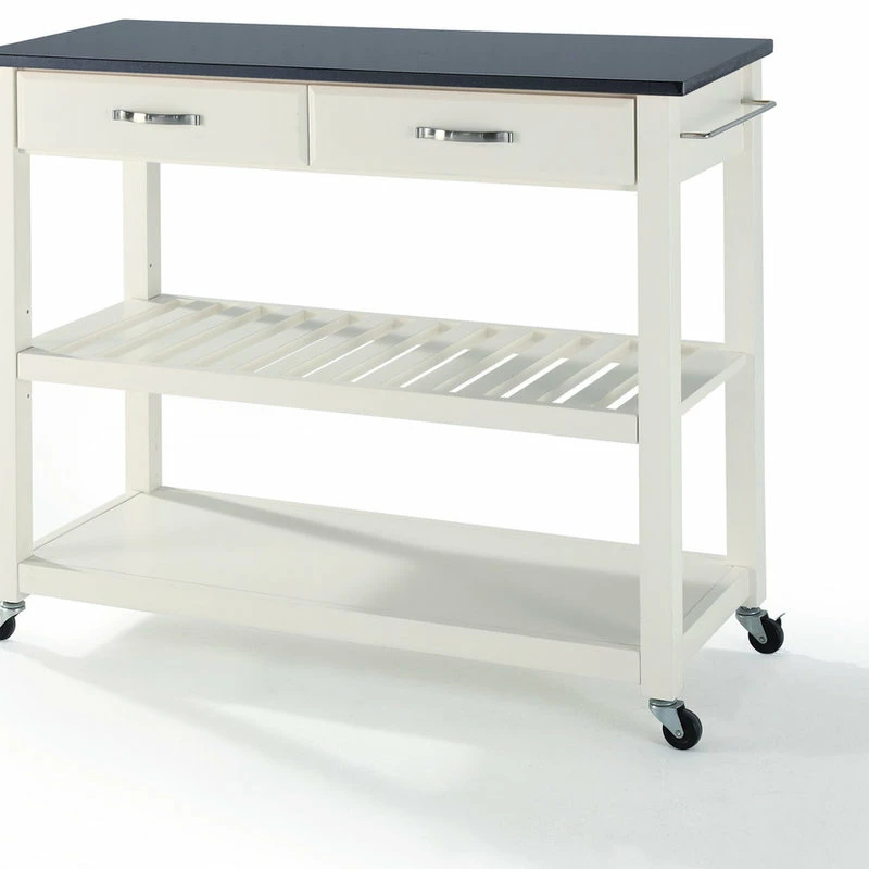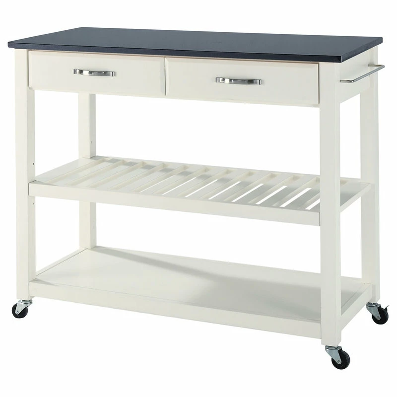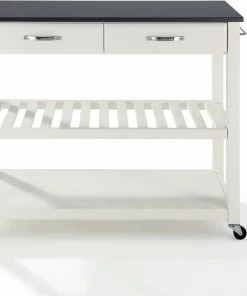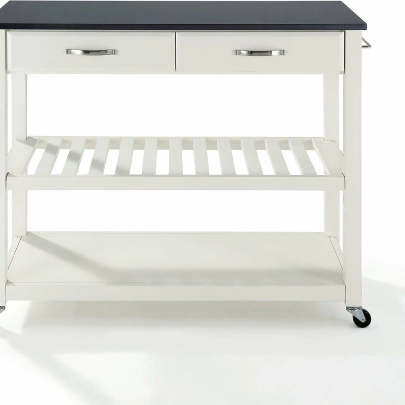 Constructed of solid hardwood and wood veneers, this mobile kitchen cart is designed for longevity. The handsome raised panel drawer fronts provide the ultimate in style to dress up any culinary space. Two deep drawers are great for holding essential items, such as utensils or storage containers. The adjustable/removable shelf is great for appliances. Remove the shelf completely to allow for storing larger objects. The heavy duty casters provide the ultimate in mobility. When the cabinet is where you want it, simply engage the locking casters to prevent movement. Style, function, and quality make this mobile solution a wise addition to your home.