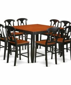 - This delightful 9 piece counter height table and chair set has a shiny black and cherry finish to it.