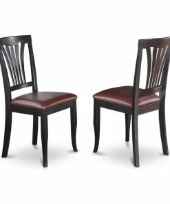 - This 7 piece dining set includes dining table and 6 faux leather seat dining room chairs finished in black and cherry.
