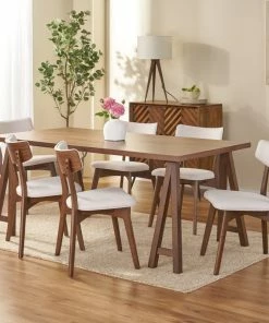 DIMENSIONS: Choose an accessory that is the perfect size for you and your furniture. Each chair is 19.75″ W x 19.75″ L x 31.50″ H and the dining table is 70.80″ W x 35.40″ L x 29.50″ H. You will love how much your space can transform with the simple addition of this charming dining set. This set comes with six chairs and one table.