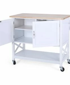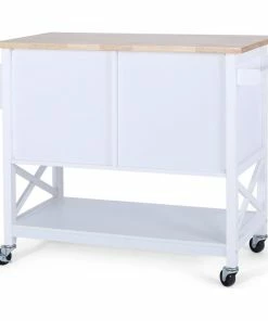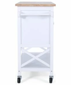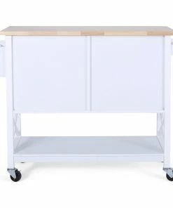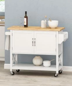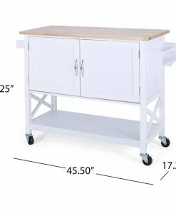 Bring outstanding design to the heart of your home with an accessory of impressive function. From a stunning farmhouse influence to easy-access towel holders, our kitchen cart offers ample organizational space to upgrade your living standard with a breeze. This piece features an open bottom shelf and a large double door cabinet space to give you plenty of options to effortlessly and efficiently store your kitchen accessories. Crafted with sturdy wood and rolling casters, our kitchen cart brings a fresh yet timeless look for all to enjoy.