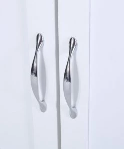STORAGE SPACE: This kitchen island offers four shelves enclosed by double cabinet doors. The cart also offers an open bottom shelf so you can store items such as mixers or extra pots.