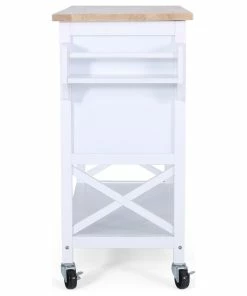 WOOD FRAME: The top of this kitchen island is crafted from rubberwood, an environmentally-friendly material that not only offers plenty of durability but also gives this piece a beautiful natural-grain look. Combined with a beautiful pine wood frame, this island offers a unique look due to its refined knotting and flexibility.