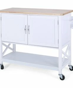 Bring outstanding design to the heart of your home with an accessory of impressive function. From a stunning farmhouse influence to easy-access towel holders, our kitchen cart offers ample organizational space to upgrade your living standard with a breeze. This piece features an open bottom shelf and a large double door cabinet space to give you plenty of options to effortlessly and efficiently store your kitchen accessories. Crafted with sturdy wood and rolling casters, our kitchen cart brings a fresh yet timeless look for all to enjoy.