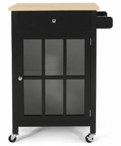 Coordinate your kitchen space with an outstanding accessory of practical charm. From its stunning glass-paneled cabinet to its incredible functionality, our kitchen cart offers ample organizational space to upgrade your living standard with a breeze. This piece offers a stunning contemporary style and convenient design that gives you plenty of options to effortlessly and efficiently store your kitchen accessories. Crafted with sturdy wood and rolling casters, our kitchen cart brings a fresh yet timeless look for you to utilize with ease.