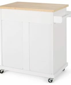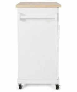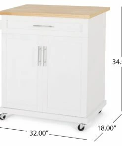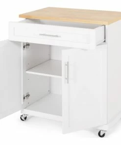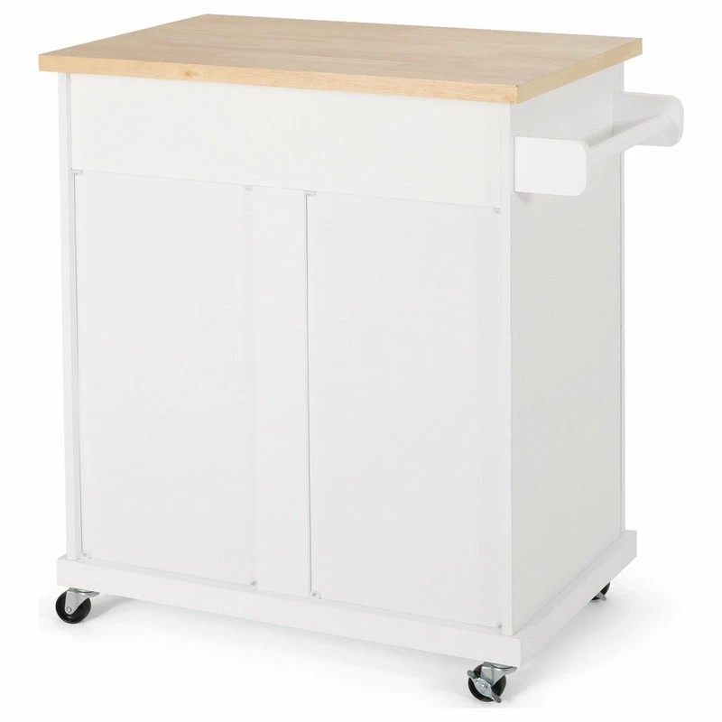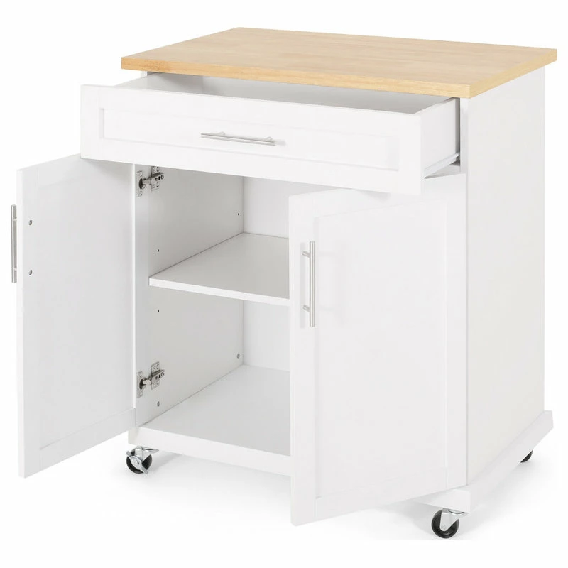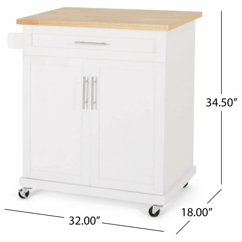 MANUFACTURED WOOD: This kitchen cart is crafted of durable manufactured wood for a low maintenance yet stunning appearance. The top is finished with a rubberwood veneer, that offers plenty of durability and a beautiful natural grain look.