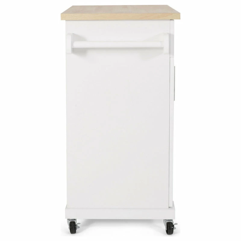Offer your kitchen space an accessory that was built to meet all of your needs. From its two-door cabinet to its incredible functionality, our kitchen cart offers ample organizational space to upgrade your living standard with a breeze. This piece offers a stunning contemporary style and convenient design that gives you plenty of options to effortlessly and efficiently store your kitchen accessories. Crafted with sturdy manufactured wood and rolling casters, our kitchen cart brings a fresh yet timeless look for you to utilize with ease.