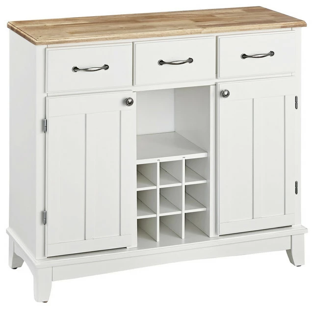 Store it all, display it all, and have it all with the Homestyles Buffet of Buffets Server. Whether used in the kitchen, dining room, or anywhere else, it brings organization to your life and style to your home. The variety of storage options including drawers, cabinets and a wine rack gives you the flexibility to figure out what’s just right for you. Pack more storage into a smaller footprint with this Off White server that easily coordinates with a variety of environments.