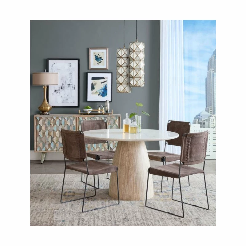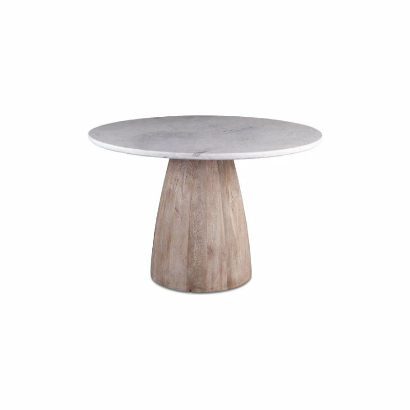 Inspired by true mid-century design, the Palm Springs round dining table focuses on a combination of curves and straight lines. Crafted from white marble, the round top is supported by a tulip style mango wood base. *Note: Because marble and wood is a naturally occurring, it will have variations in color, tone, granularity, and pattern. Sometimes these differences are slight. Sometimes they are pretty dramatic. We expect these variations. In fact, they are part of what makes each piece so beautiful and unique.