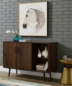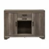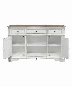 - Center Concave Top Drawer Flanked By 2 Storage Drawers/Doors