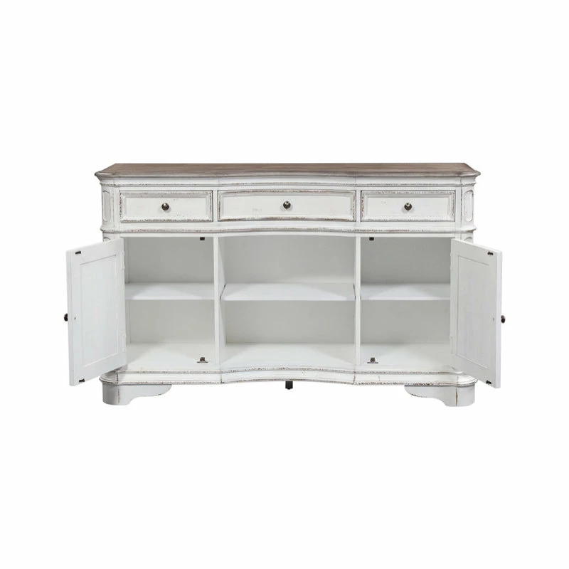 Blending of European influences makes Magnolia Manor a truly unique style for any living space. Warm antique finishes and artistic distressing along with grand scale a group to be passed to generations.