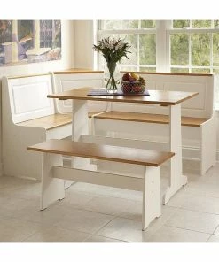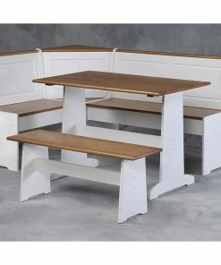 Ardmore Corner Nook Set. Nestled in a corner of your kitchen this nook set is the perfect spot for meals or family gatherings. The contrasting finishes on this corner nook give it a traditional farm house appeal. The set includes five pieces; side bench, table and long and short benches with a wedge.