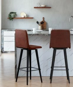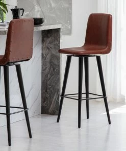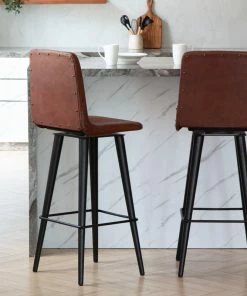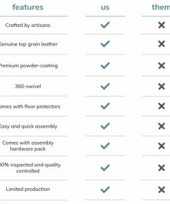 Handcrafted using top-grain genuine leather, this barstool is a total showstopper. Ergonomically designed with a backrest, powder-coated sturdy frame, and four-sided footrest, it’s as functional as good looking! We love the gold-studded rivets on the sides and detailed stitching- so stunning. Conversations are now easier with that 360° swivel so we love it for long sittings!