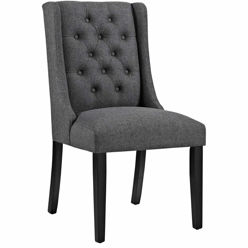 Bestow splendor with Baronet. Charm and elegance adorn this luxurious button tufted dining chair complete with sleek curves and dignified form. Featuring dense foam padding, fine fabric upholstery, a solid wood frame, and non-marking foot glides, Baronet is a stylish dining chair perfect for the modern home.