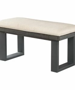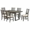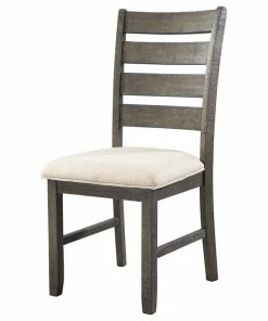 Combining rustic charm with modern accents, the Sullivan collection is the best way to introduce a fresh look to your dining room. This set features warm, wood-grain details in a smoky dark ash finish. Ladder back chairs with upholstered cream cushion seats give a country chic vibe while the rectangle metal legs on the table, bench, and server add a dash of contemporary style.