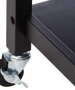Features a storage cabinet cart, with 3 shelves, a cabinet with an adjustable shelf behind the door and a drawer on a 4 wheel base. (2 wheels are locking)