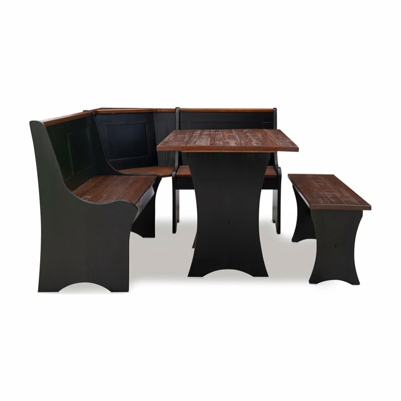 - Set Includes: One (1) Corner Unit, One (1) Table and One (1) Bench