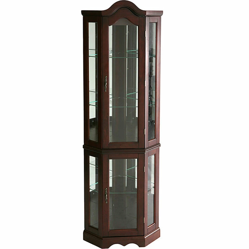 - Space Saving, Lighted Corner Design Curio with Mirrored Back