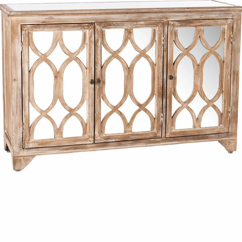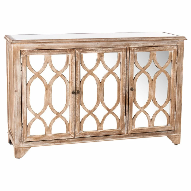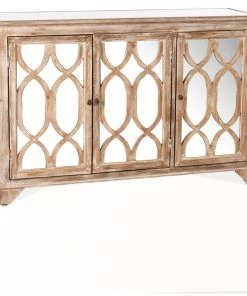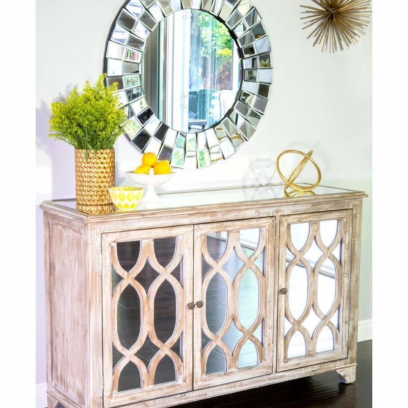 Update your home decor with the gorgeous Hannah Buffet. A versatile piece features mirrored doors, detailed wood overlay and natural, neutral hues. Accessorize the Hannah Buffet with your favorite vases and photo frames to add your own personal touch and complement your current home decor. A functional and stylish piece that will effortlessly elevate any space of your home.