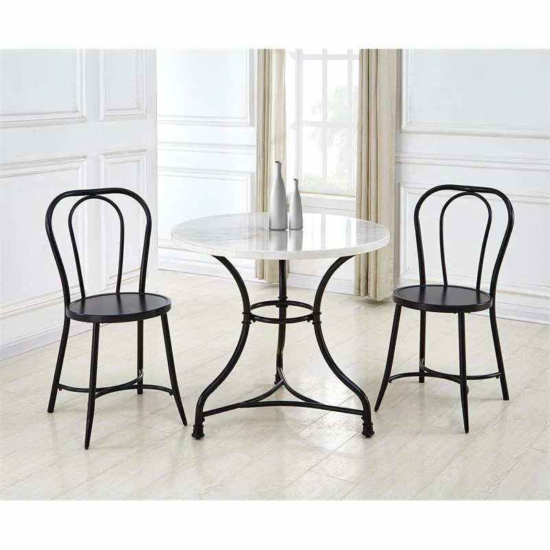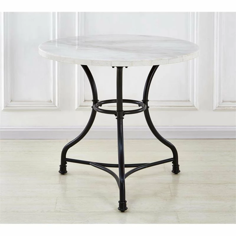 Bring home the romance of a French Bistro with the Claire collection of marble and metal tables and chairs from Steve Silver Company. You can create the ambiance of your favorite neighborhood cafe with the Claire 34″ Round Table. The seamless white marble top pairs with the black iron base for a look that is truly charming.