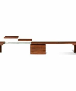 The dining set was designed to bring people together and extends to fit perfectly in any living space. With ease, this innovative table extends from 18″ to 10′, while the bench extends from 28″ to 11′. Fully extended, the Transformer Dining Set can sit up to 12 of your guests. This set includes a dining table, a bench, and a coffee table.