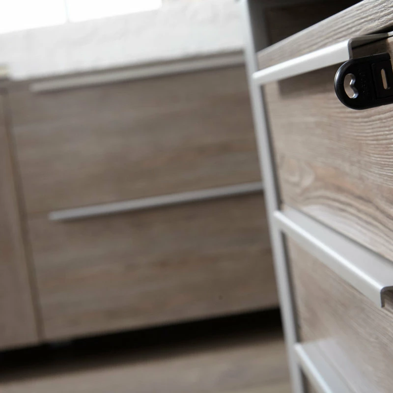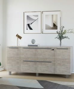 Modern and functional, this office collection gracefully bridges classic and contemporary styles. With a recessed open base, the airy yet minimalistic design and distinctive pulls are details you’ll enjoy every day. Fully integrated for today’s technology, the desks feature a magnetic wire management system to keep your cords neat and organized. And with a wide array of options for storage and filing, the flexibility is sure to give this office collection a place in your office for years to come.
