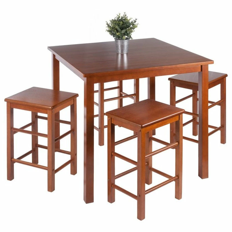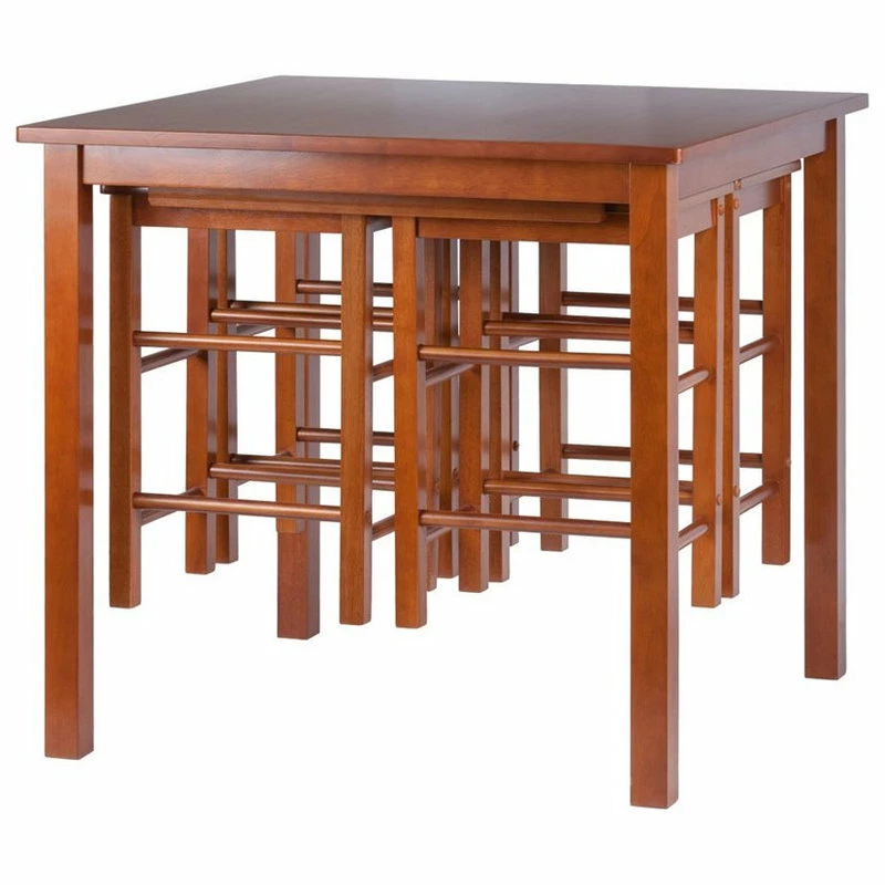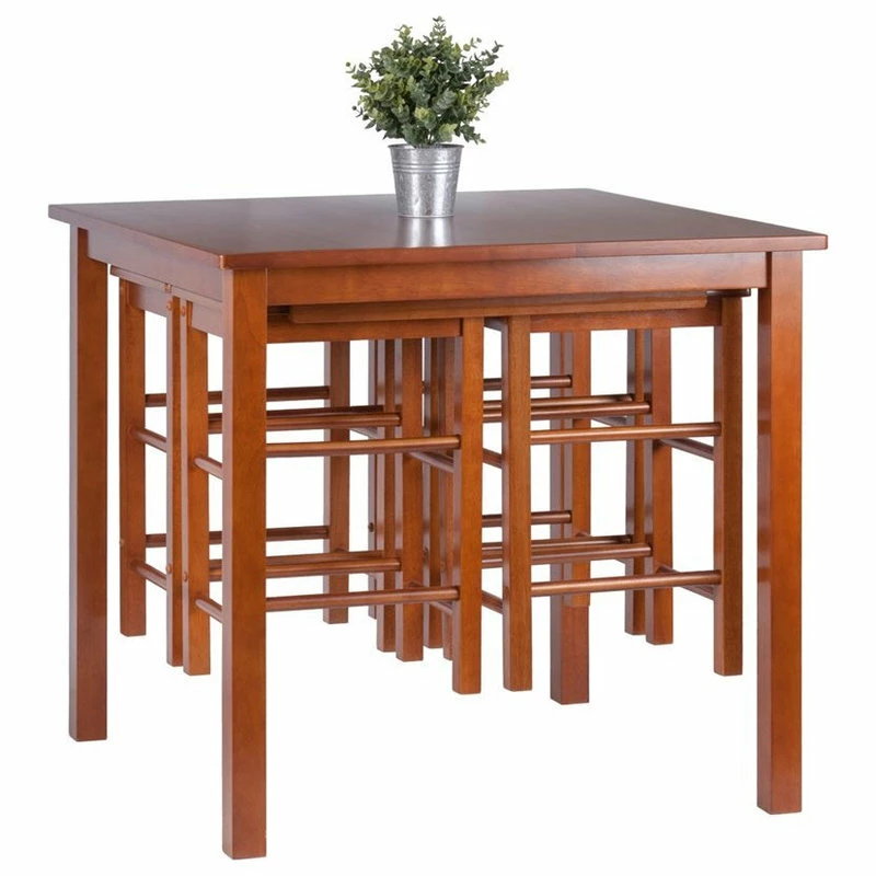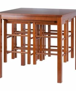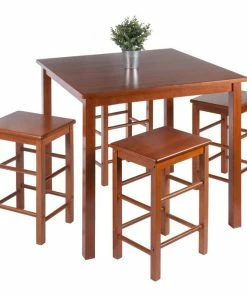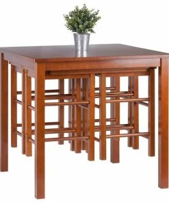 This inviting Stella 5-Piece Space Saver Set by Winsome Wood was designed to maximize small space living while offering big benefits. At 33″ square, this sturdy and compact table is perfect for your dining room or kitchen. It also makes an ideal place for games, puzzles, and crafts in the kids’ rooms, den, or family room. When not in use, all 4 stools can be stowed away on the slip-in rails under the tabletop, keeping the room uncluttered and providing easy access for cleaning and pick up. Pull out one or more stools as you need. This makes a great choice for a studio apartment or small spaces that need versatility. Both table and stools are made of solid wood for durability, and the natural wood grain, finished in Teak, adds warmth and polish to any setting. Conveniently packed and shipped in 1 box, that includes the hardware necessary for assembling. Replacement part request can be submitted directly to the manufacturer within 60 days from date of purchase.