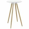 - Round table top with MDF veneer in black has diameter of 23.6″ and stands at 39.75″ High.