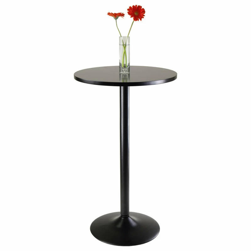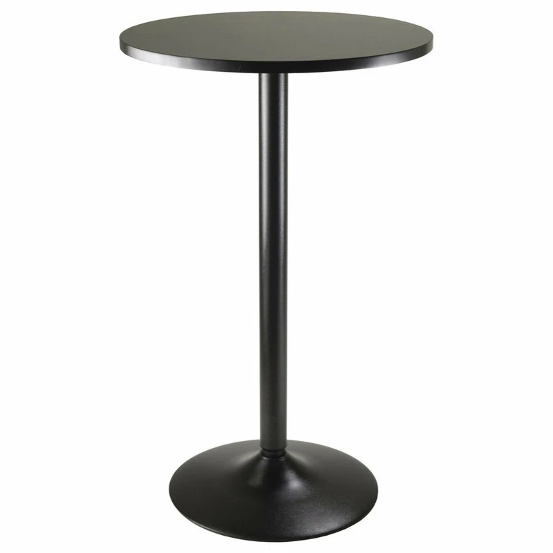 This is a sleek and stylish all black round Pub Table made of veneer on MDF and attached to an all black metal base. Table size 23.6″ round by 39.75″ high. Easy assembly.Features