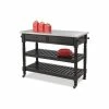 - Made of natural bamboo Rolls easily with two locking casters ships in 1 box